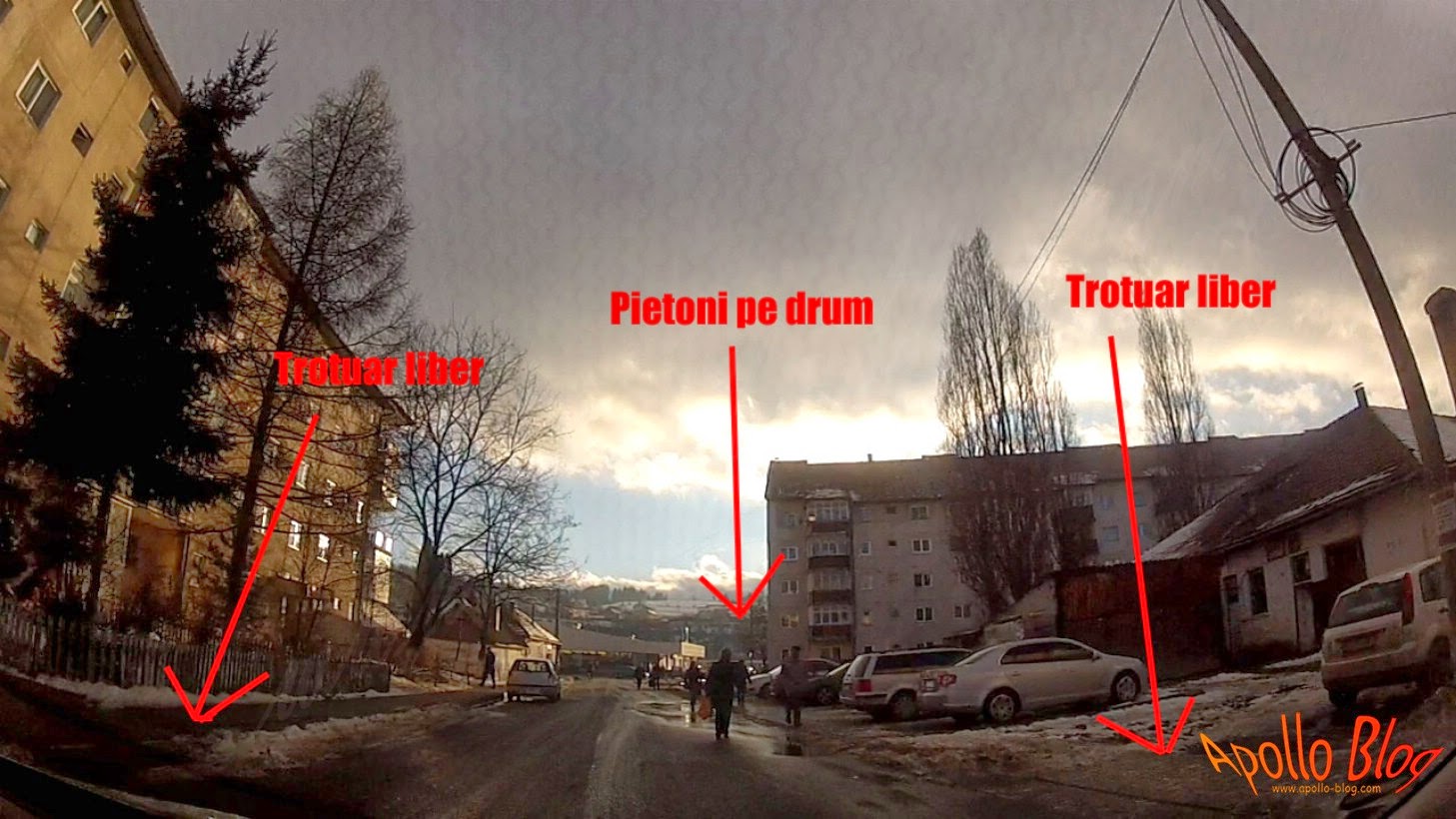 Anul trecut in municipiul Toplita, cartierul Sportivilor, s-a redus latimea strazii cu cel putin 2 metri, s-au facut trotuare peste trotuare si pietonii merg tot pe strada, chiar daca primaria a hotarat sa le imbunatateasca stilul de viata si sa le creasca siguranta. Daca va intalniti cu asfel de persoane va rog sa le claxonati si sa le ajutati sa descopere trotuarele.